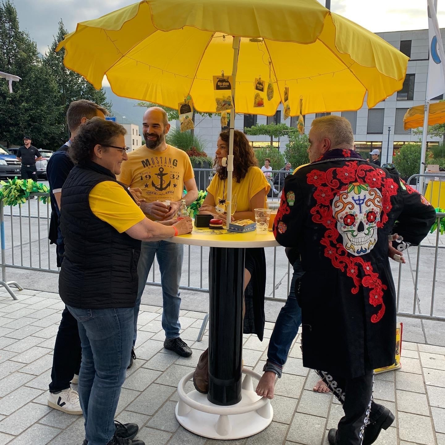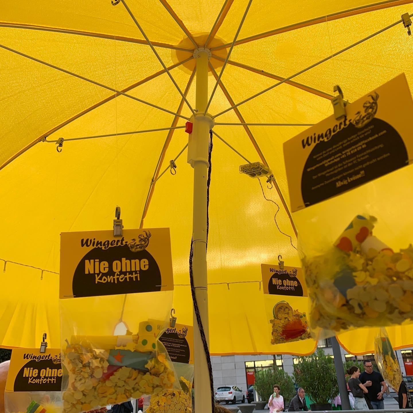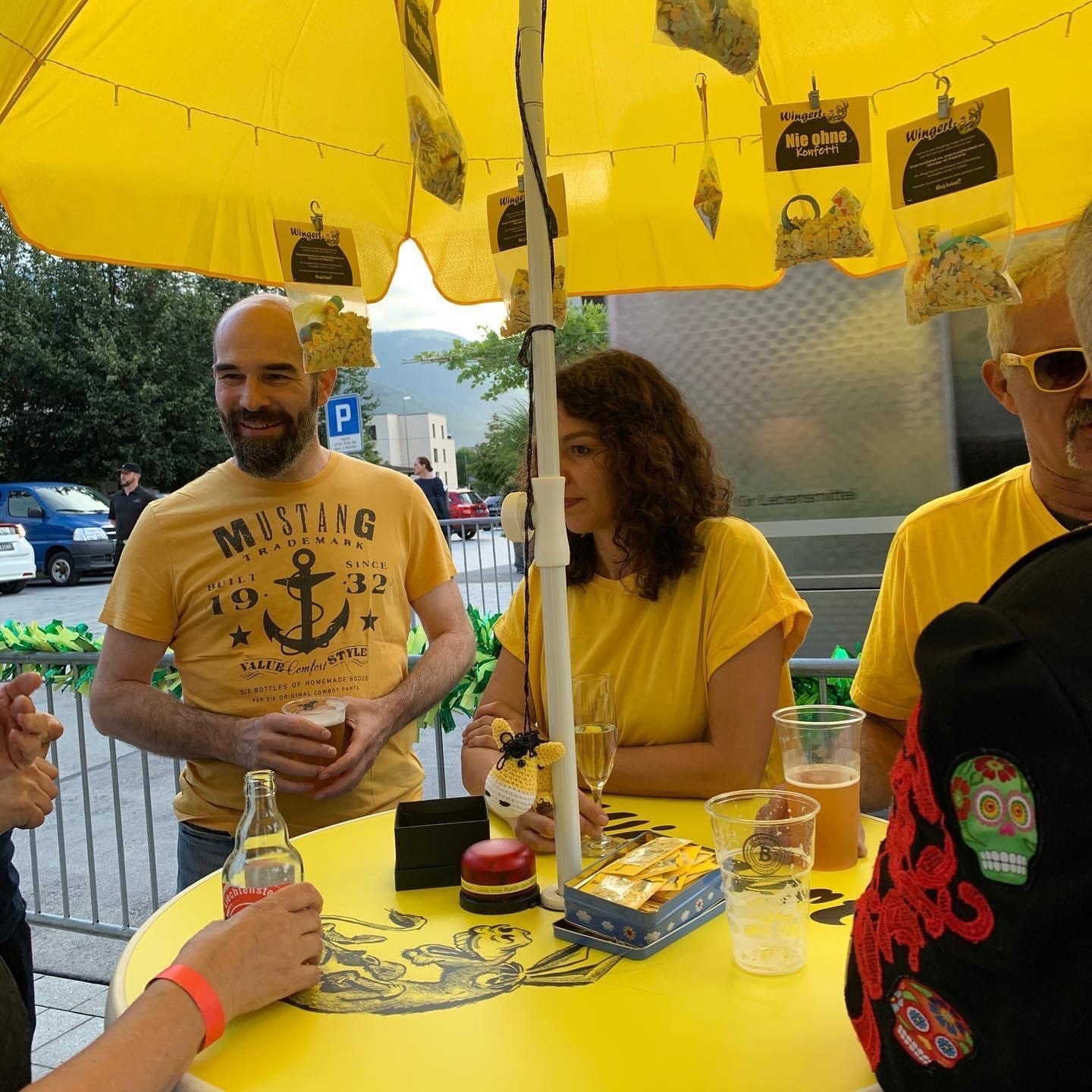 Unser "Gschechtatesch" hatte an dieser Veranstaltung Premiere. Wo auch immer du unseren Tisch siehst, kannst Du direkt deine Geschichte für die nächste Wingerteselausgabe anbringen.