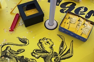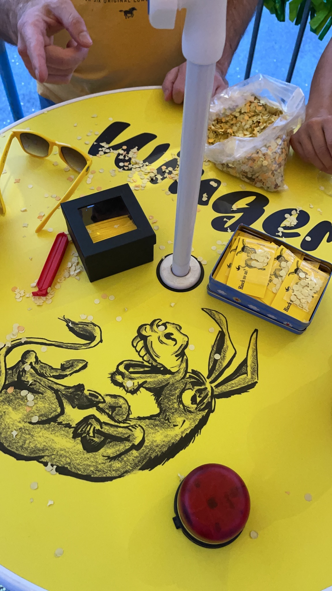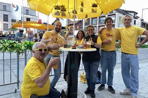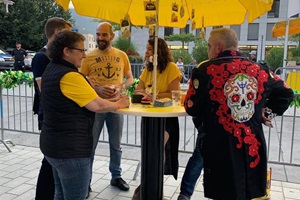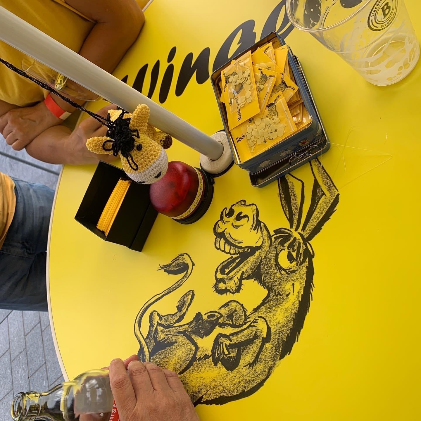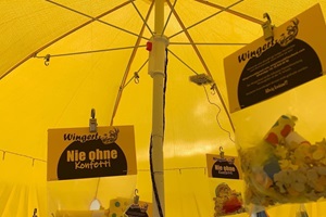Unser "Gschechtatesch" hatte an dieser Veranstaltung Premiere. Wo auch immer du unseren Tisch siehst, kannst Du direkt deine Geschichte für die nächste Wingerteselausgabe anbringen.