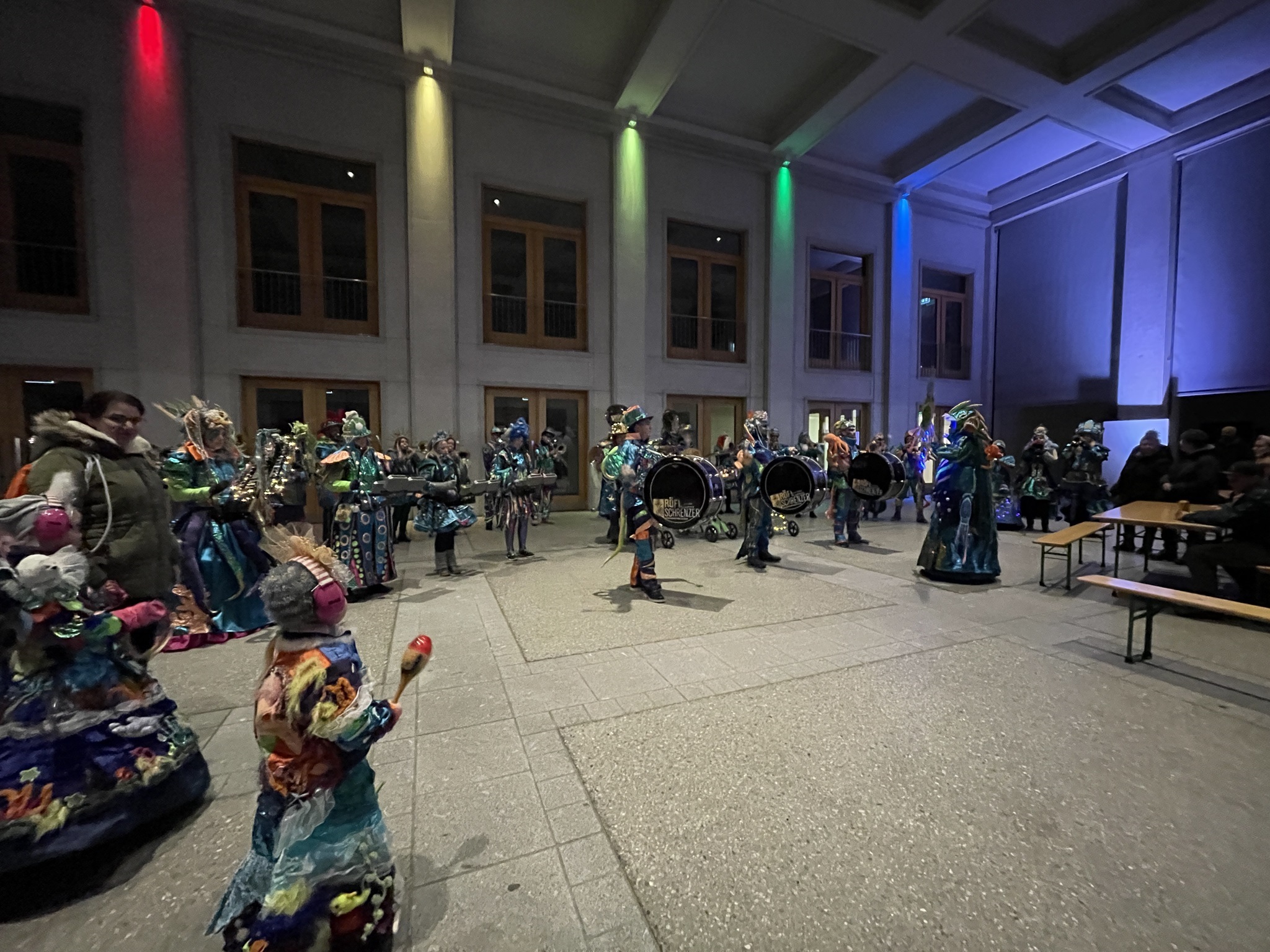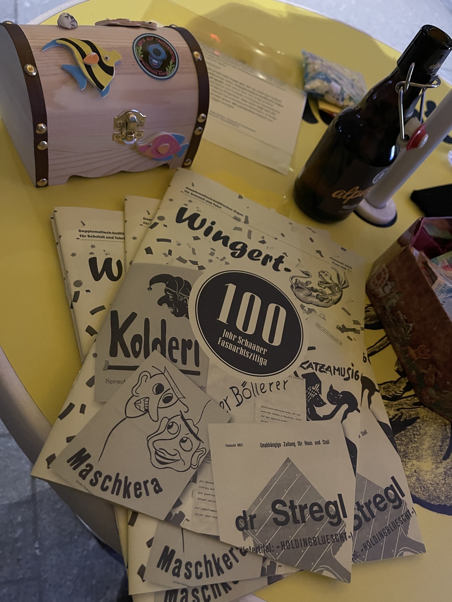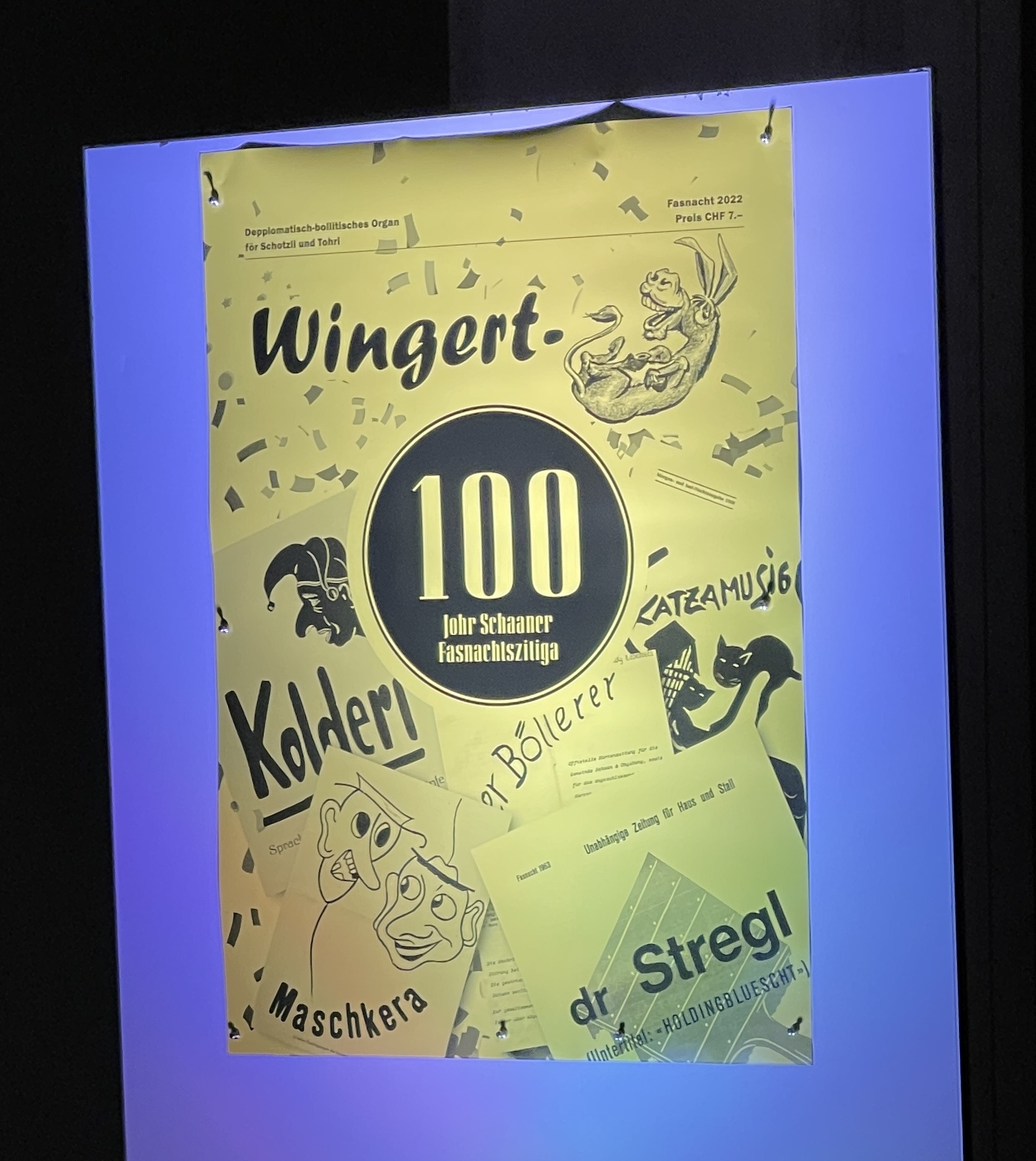 Die Jubiläumsausgabe "100 Johr Schaaner Fasnachtszitig" wurde im Rahmen einer Präsentation im Schaaner Lindahof vorgestellt. Musikalisch umrahmt wurde dies durch die Guggamusik Röfischrenzer.
