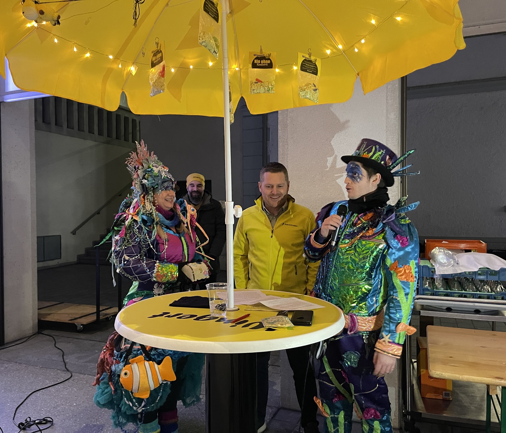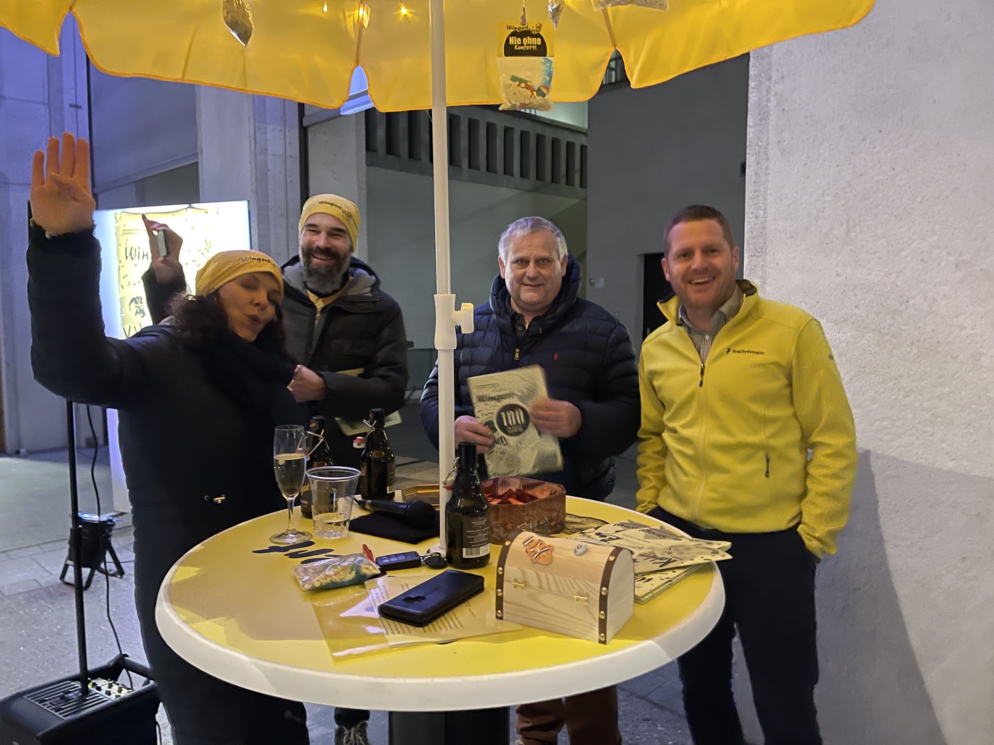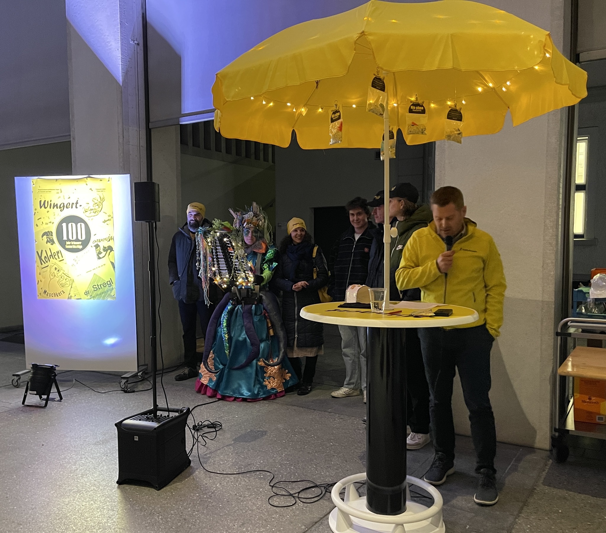 Die Jubiläumsausgabe "100 Johr Schaaner Fasnachtszitig" wurde im Rahmen einer Präsentation im Schaaner Lindahof vorgestellt. Musikalisch umrahmt wurde dies durch die Guggamusik Röfischrenzer.